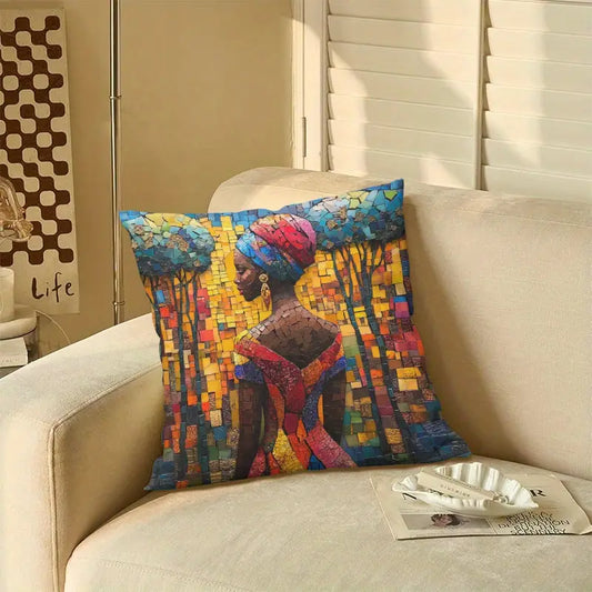 1 pc Vibrant African Woman Mosaic Art decorative cushion