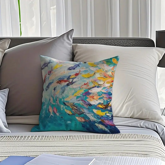 1 Vibrant Underwater Scene Fish Print Decorative Cushion